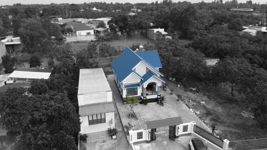 Ngôi nhà nổi bật với mái ngói xanh da trời, tạo nên một sự hoà quyện tuyệt vời giữa vẻ đẹp truyền thống và sự hiện đại. Cổng CNC cổ điển hoành tráng chào đón khách vào căn biệt thự, tôn lên vẻ đẹp lịch lãm và sang trọng. Lan can kính bao quanh tầng […]
